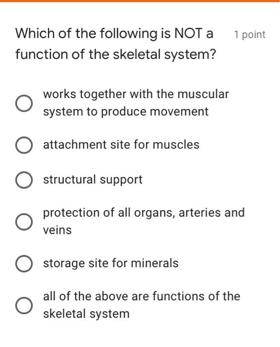 Which Of The Following Is Not A Function Performed By The Skeletal System?