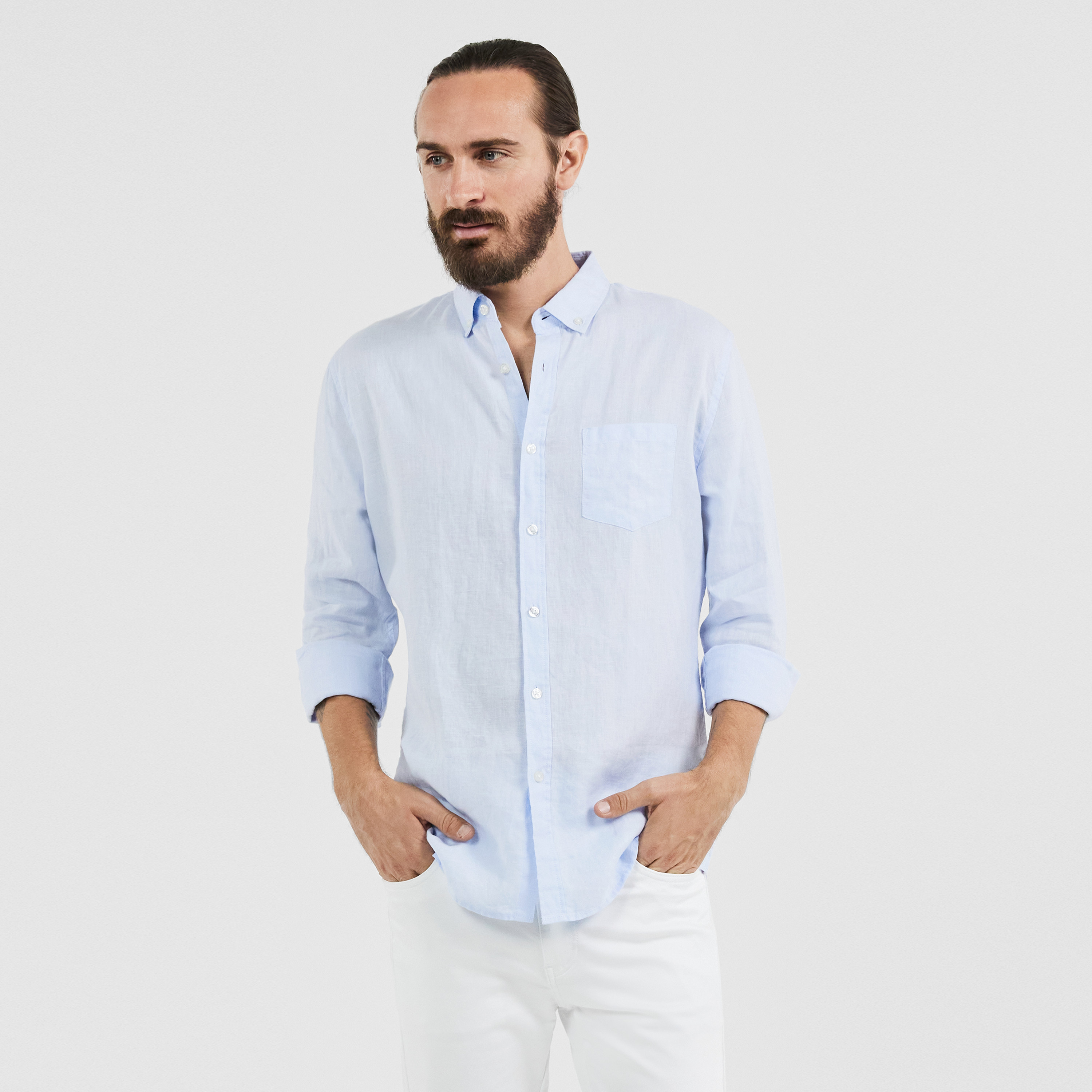 LUCA CUSTOM FİT LİNEN SHİRT WİTH KENT COLLAR.